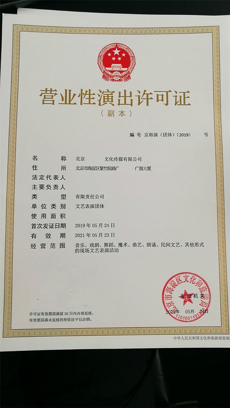 北京营业性演出许可证文艺表演团体,演出经纪机构为您解决如下区域:朝阳区,西城区,丰台区,东城区,海淀区,大兴区,通州区,顺义区,怀柔区,房山区,昌平区,密云区,延庆区,平谷区,石景山区,门头沟区。5 3 f e n l e i c o m